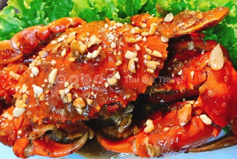 Chù ụ là loài cua sống nhiều ở các bãi bùn, rừng ngập mặn ven biển. Chù ụ Trà Vinh có thịt chắc, ngọt tự nhiên và mùi thơm đặc trưng. Sau khi được làm sạch, chù ụ được rang cùng nước me chua thanh, thêm tỏi, ớt và gia vị vừa đủ, tạo nên món ăn có màu đỏ nâu bắt mắt, hương thơm lan tỏa đầy cuốn hút.