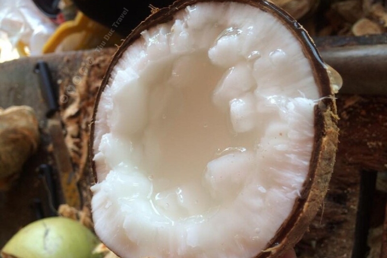 Khác với dừa thường, dừa sáp có phần cơm dày, dẻo và xốp, nước dừa rất ít, sánh đặc như kem. Khi bổ ra, phần ruột dừa trắng ngần, mềm mịn, có thể dùng muỗng xúc ăn trực tiếp. Chính kết cấu độc đáo và hương vị béo thơm tự nhiên đã tạo nên sức hút riêng biệt cho dừa sáp Trà Vinh, khiến nhiều du khách không ngần ngại tìm mua dù giá thành khá cao.