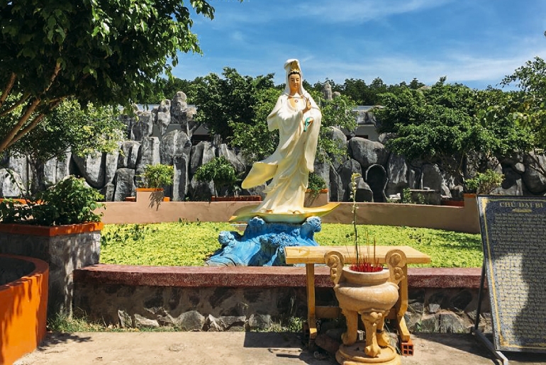 Đến năm 1973, Hòa thượng Thích Trí Đức đến đây, nhận ra sự linh thiêng thần thành nơi này nên đã cho xây dựng thành ngôi chùa khang trang hơn. Hòa thượng đã cho xây một Quan Thế Âm Bộ Tát cao 11m (Chưa tính phần bệ tượng) với tầm nhìn ra biển. Tượng xây trong 2 năm, đến năm 1975 thì hoàn thành.