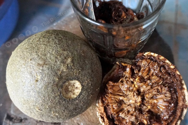 Quách có lớp vỏ cứng, sần sùi, bên trong là phần ruột màu nâu sẫm, mềm mịn, có mùi thơm đặc trưng. Khi chín, thịt quách có vị chua ngọt hài hòa, thoang thoảng mùi nồng rất riêng, không thể nhầm lẫn với bất kỳ loại trái cây nào khác. Chính hương vị độc đáo ấy đã làm nên nét riêng cho trái quách miền Tây.